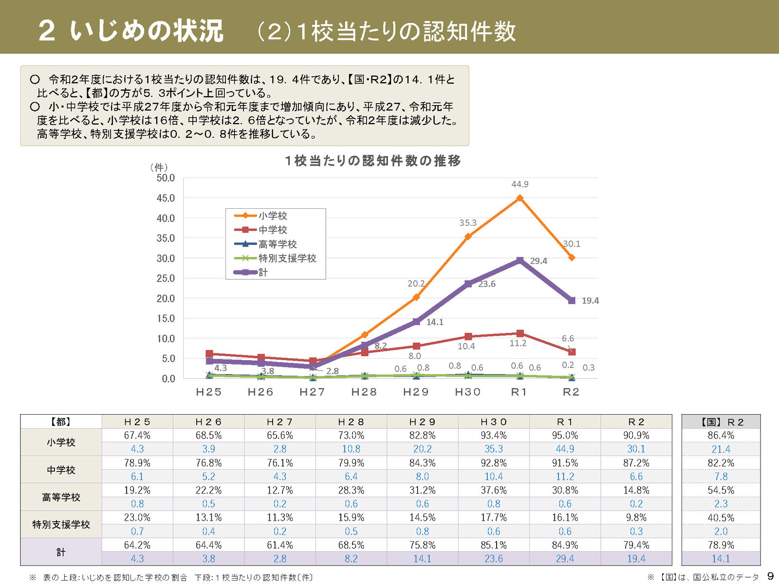 文部科学省は、10月13日、「令和2年度児童生徒の問題行動・不登校等生徒指導上の諸課題に関する調査結果」を公表した。暴力行為、長期欠席(不登校)も調査対象となっているが、今回はいじめについて調査内容を確認してみたい。