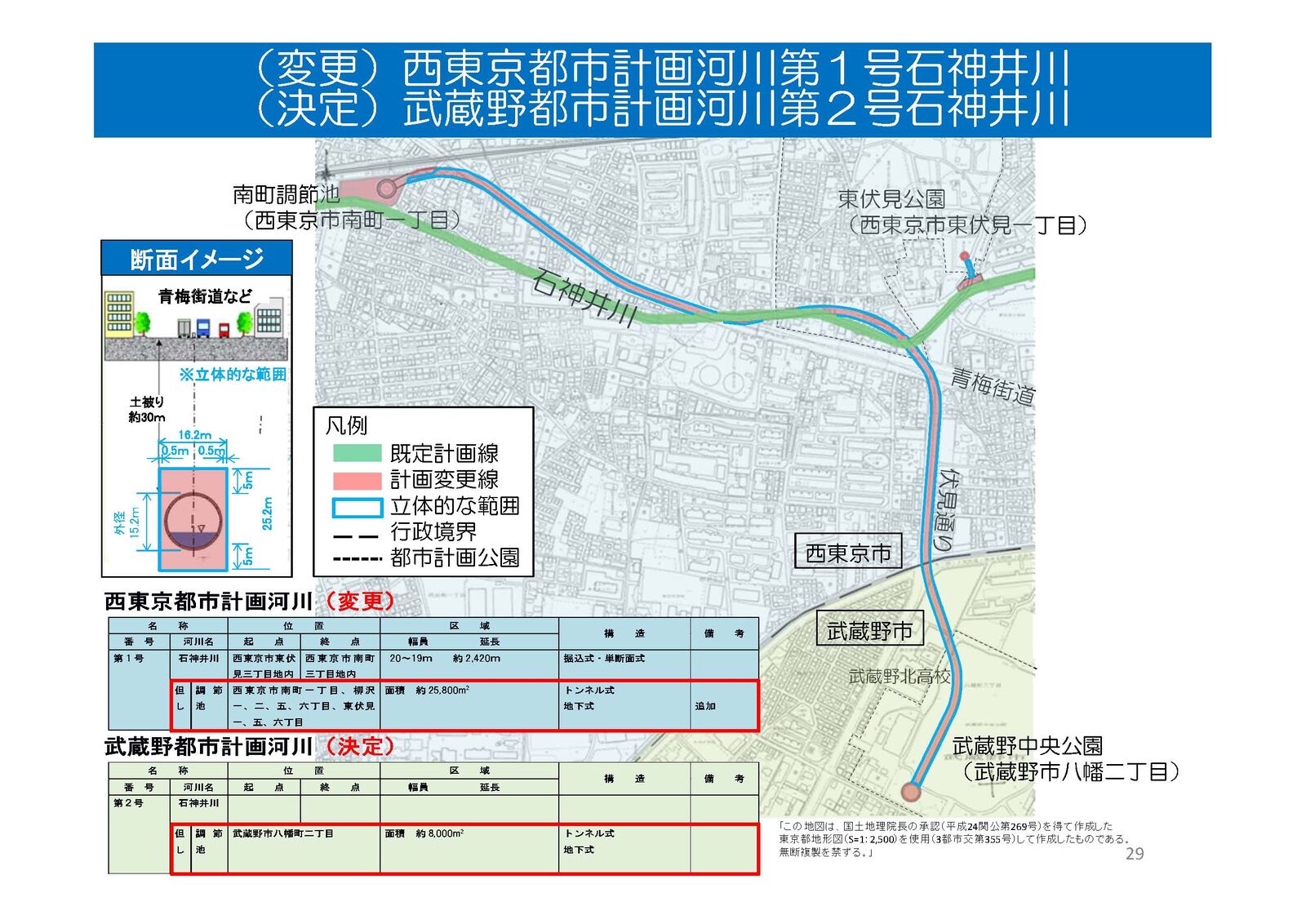 東京都が石神井川の洪水対策として建設する第一調節池(仮称)工事により都立中央公園に設けられる予定のトンネル工事について、武蔵野市は、工事車両の出入口を現在想定している通路の変更を求める要望書を都へ提出した。