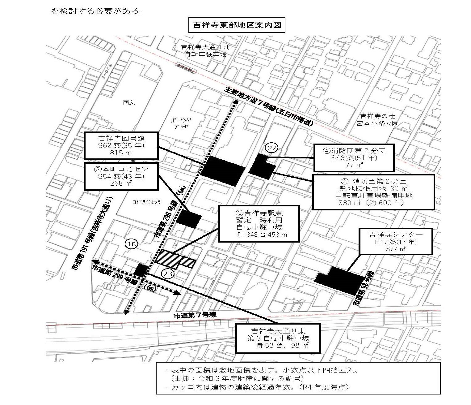 吉祥寺大通り駐輪場売却と民間事業者からの新たな土地の購入(交換)により、吉祥寺本町コミュニティセンター(コミセン)と消防団第二分団詰所の建替えの検討が始まる。本町コミセンは他の機能との複合化も検討される。