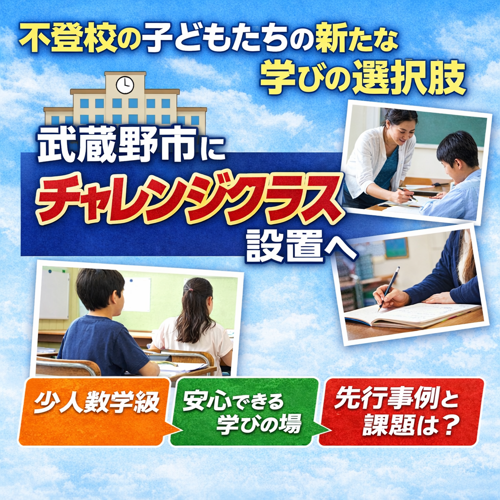 武蔵野市教育委員会は、不登校の生徒が安心して学べる環境を整えるため、令和8年4月からチャレンジクラスを市立第五中学校に設置する予定だ。